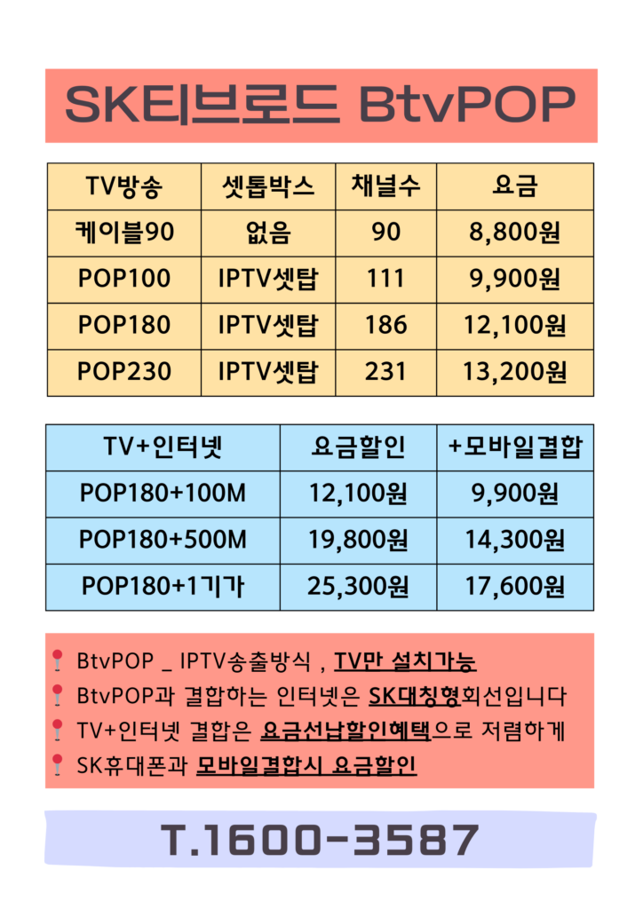 SK티브로드 BtvPOP+인터넷 가입문의 T.1600-3587